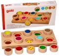 Zabawa polega na dopasowaniu klocka do odpowiedniej miejsca na drewnianej planszy. Klocki co najważniejsze oprócz różnych kolorów mają różną fakturę co pozwala je rozróżnić po dotyku.