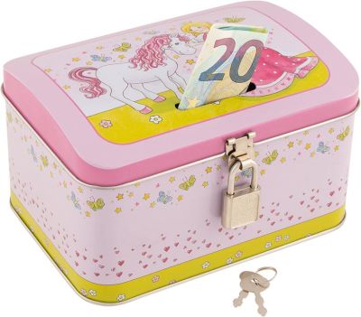 Przedstawiamy metalową skarbonkę, która wyglądem przypomina prawdziwy sejf lub kasę pancerną. W górnej częsci skarbonki jest otwór, przez który dziecko może wrzucać monety. Każda skarbonka ma swój unikatowy szyfr, dzięki któremu można otworzyć drzwiczki skarbonki.