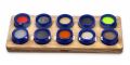 Zabawa polega na dopasowaniu klocka do odpowiedniego miejsca na drewnianej planszy. Klocki mają jednakowy kształt,a różnią się jedynie strukturą wewnątrz drewnianego cylindra.