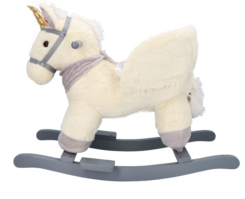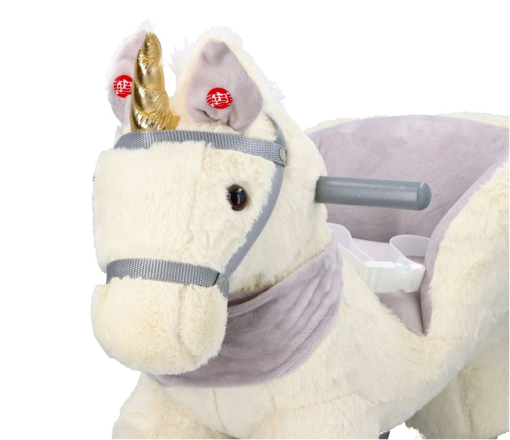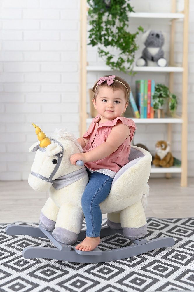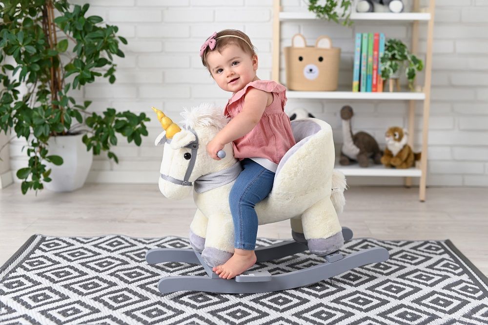 Magiczny jednorożec ze złotym rogiem zaprasza do zabawy. Nowa linia zabawek do bujania to nie tylko zmodyfikowana konstrukcja, ale również najmodniejszy design. Dodatkową zaletą jest przeznaczenie zabawki dla młodszych dzieci, dla których tradycyjny konik na biegunach nie byłby bezpieczny. Teraz dzięki dodatkowemu pasowi mogą się w nim bujać dzieci już od 10-tego miesiąca.
