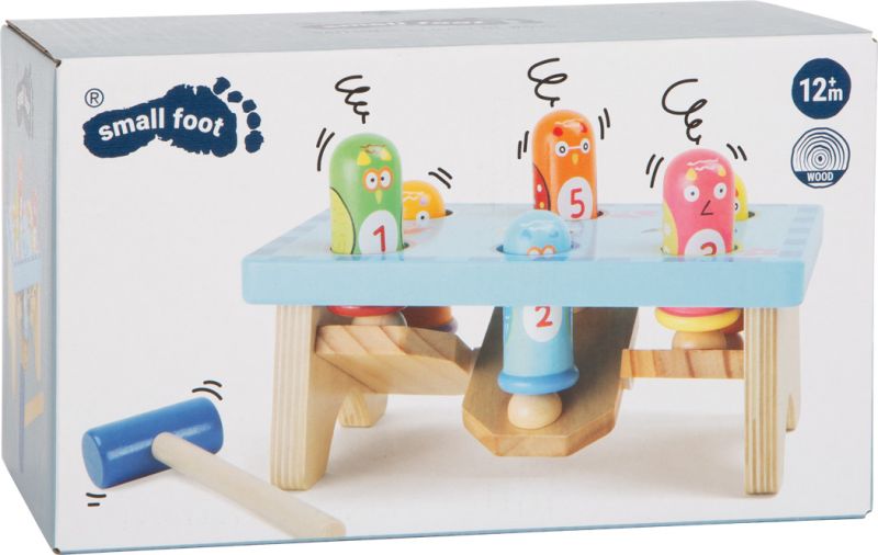 Tutaj dziecko ma pełną swobodę w zabawie i nikt nie zwraca uwagi, że tak nie wolno lub nie można pohałasować. To wystarczający powód, aby ta zabawka podbiła serce malucha. Przy okazji zabawy dziecko poprawia koordynację wzrokowo-ruchową. Sprawność rączek poprawia się zdecydowanie - dziecko coraz szybciej, celniej i mocniej. Całość wykonana z drewna w ciekawej kolorystyce z kolorowymi nadrukami.