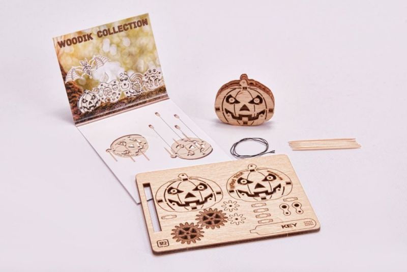 Po złożeniu dyni po bokach wystają koła zębate. Wystarczy nimi obracać, aby oczy dyni poruszały się złowrogo. Idealnie sprawdzi się również jako gadżet na Halloween. Sprawdźcie się! Ten kolekcjonerski model to świetna zabawa w ekologicznej, drewnianej formie.