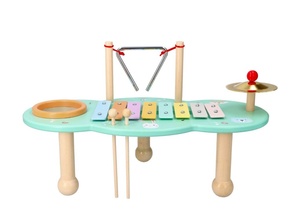 Zestaw muzyczny został zaprojektowany z myślą rozwijania zainteresowania muzyką od najmłodszych lat. Dzięki jego zawartości dziecko może poznać różne dźwięki, a wszystkie będą w zasięgu jego rączek.