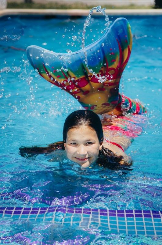 - pływanie jak syrena, zachęca do ruchu oraz świetnie wpływa na mięśnie brzucha i kręgosłupa