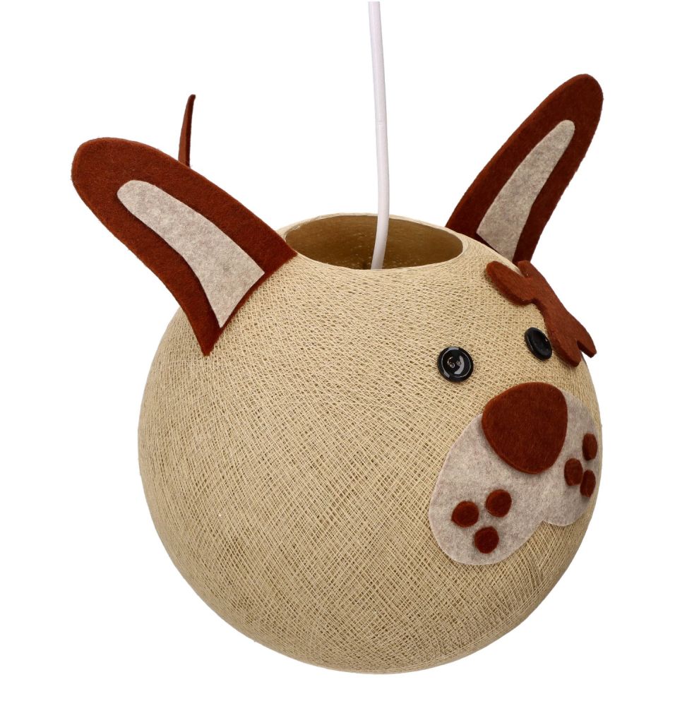 Lampki występują w wersji stojącej lub wiszącej w wielu ciekawych wzorach. Prezentowana lampka to śliczny piesek do zawieszenia. Ze względu na to, że lampki są ręcznie wykonane mogą się delikatnie różnić w szczegółach wykonania.