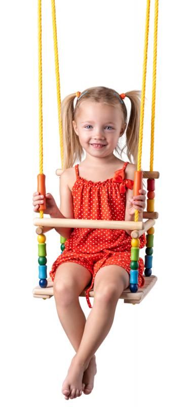 Nasz produkt jest całkowicie bezpieczny, oznaczony znakiem CE. Został rygorystycznie przetestowany pod kątem jakości wykonania i niezawodności. Huśtawka posiada duże, podwyższane siedzisko tak aby wygodniej było dziecku się huśtać. Z przodu posiada drewnianą poprzeczkę, którą możemy unieść na sznurkach, aby wygodniej było wsadzić dziecko. Nylonowe liny wykończone są metalowymi okuciami.