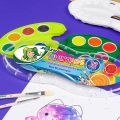 Opakowanie składa się z następujących elementów: wieczko, dwie części z pastylkami farby (można je rozkładać, aby wygodnie trzymać w dłoni) oraz spód, który jednocześnie będzie miejscem do mieszania farb. Na spodniej części znajduje się miejsce na pędzelki, tubkę z białą farbą oraz mnóstwo zagłębień, w których można dowolnie tworzyć nowe kolory i wykorzystywać je do malowania. Cała podstawa jest również łatwa do utrzymania w czystości. Po zakończonej zabawie wystarczy ją umyć pod kranem, aby łatwo używać kolejny raz.