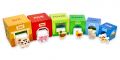 Zestaw zawiera 6 kartonowych kubeczków - domków i 6 drewnianych figurek zwierząt: pieska, króliczka, kurki, kaczki, świnki i krowy.