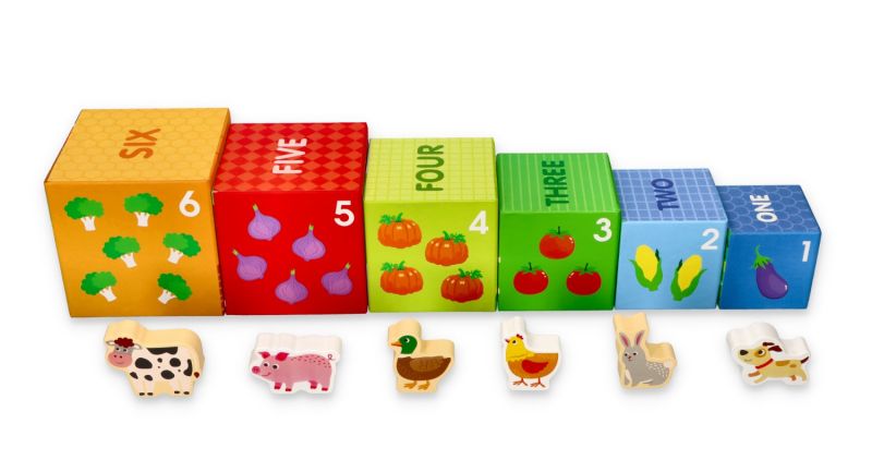 Wszystkie kubeczki i zwierzątka dziecko może ustawiać w dowolnej konfiguracji. Może je ułożyć w wieżę, może układać je niezależnie tworząc swoją farmę, gdzie każda figurka ma swój domek. Może wreszcie chować kubeczki jeden w drugi, bo każdy kolejny jest mniejszy od poprzedniego. W ten sposób dziecko uczy się zależności pomiędzy przedmiotami. Całość stanowi wiele wspaniałych atrakcji dla malucha i będzie cudną zabawką edukacyjną.
