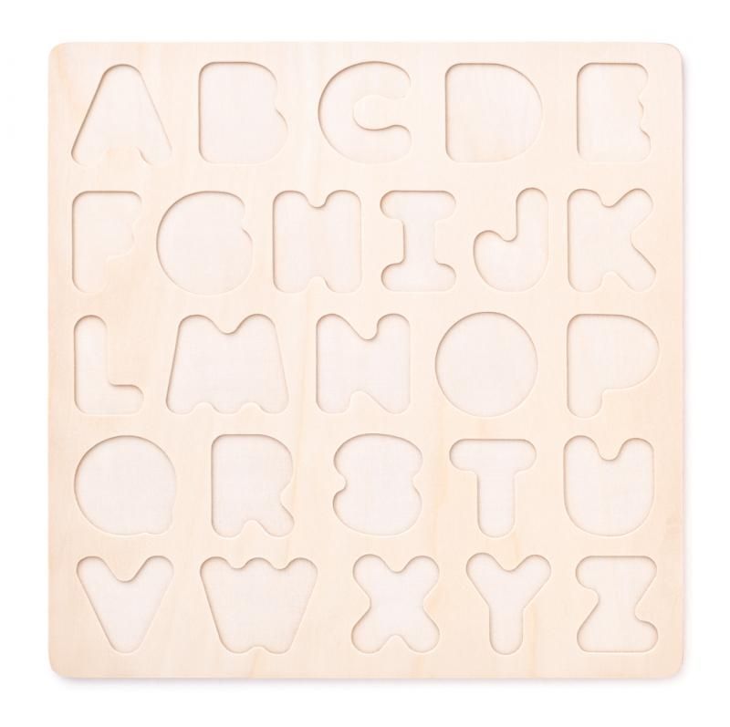 Alfabet jest angielski, nie zawiera polskich znaków. Układanka może również posłużyć w nauce języka angielskiego.