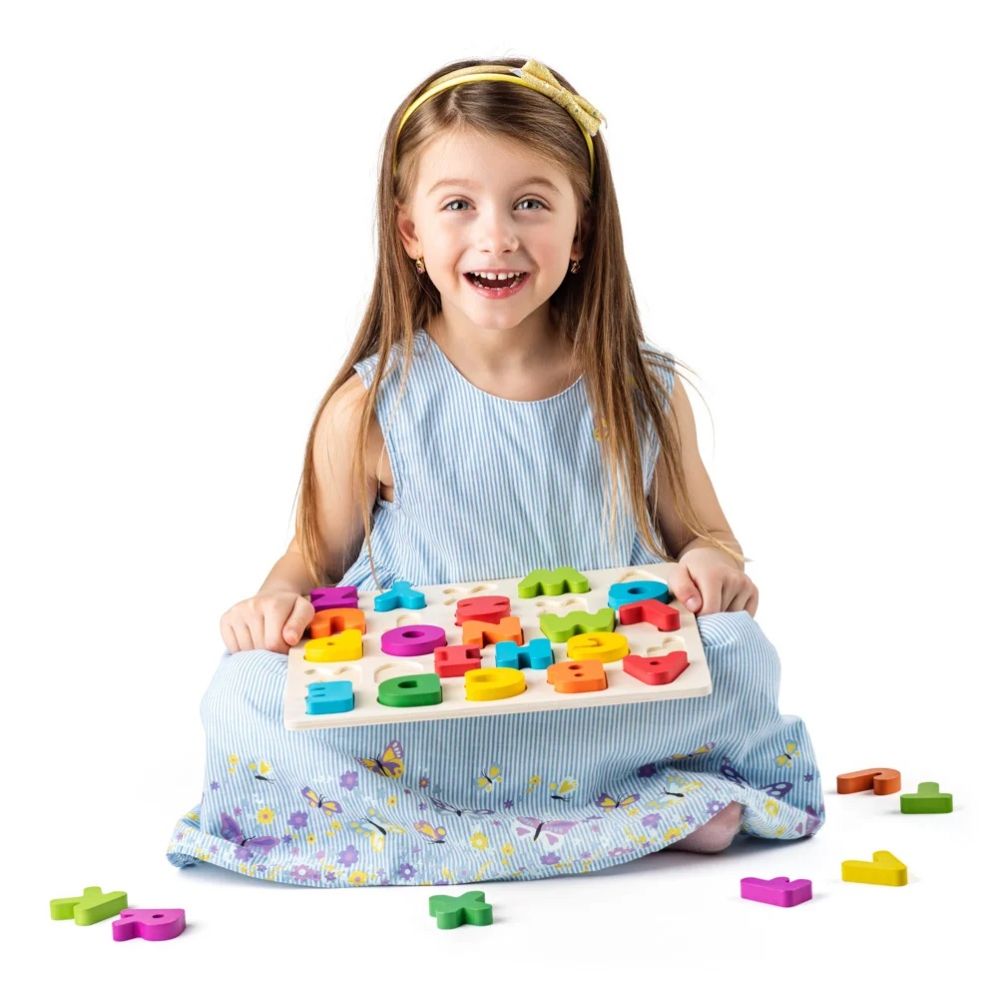 Oto nowy sposób uczenia się alfabetu od firmy WoodyLand. Kolorowe literki w formie wspaniałej układanki. Dziecko miło spędzi czas układając literki,a co najważniejsze, przyswoi alfabet. Może układać literki na drewnianej podstawie lub poza nią.