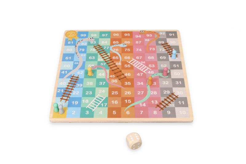 Druga gra to tradycyjna gra z Wielkiej Brytanii 'Węże i drabiny". W rozgrywce może brać udział maksymalnie 6 osób. Należy ustawić pionki na polu z numerem 1, a następnie przesuwać się do mety po kolejno ponumerowanych polach zgodnie z ilością oczek wskazanych przez kostkę. Ale uwaga w tej grze można łatwo wspiąć się w górę, ale i spaść wiele pól w dół. Wszystko za sprawą drabin - te przenoszą nas w górę, lub węży, po których niestety zsuwamy się w dół.