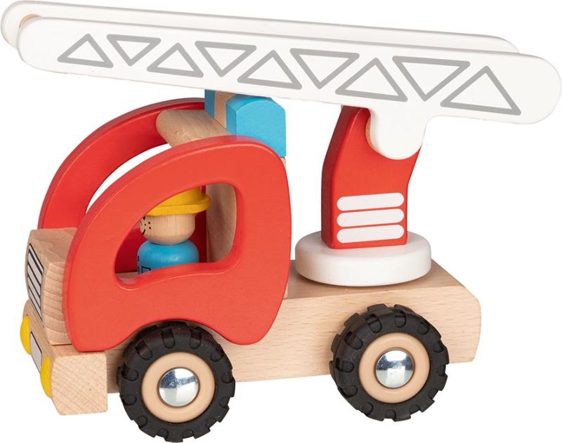 Zostanie w przyszłości strażakiem to marzenie niejednego chłopca. Jeśli wasz chłopiec myśli o tym samym, to jesteście we właściwym miejscu. Autko straży pożarnej firmy Goki to wspaniała propozycja na zabawkę dla małego mężczyzny. Zostało ono w całości wykonane z drewna, jedynie na kołach posiada ogumienie.  Autko prowadzi drewniany strażak. Na pace ma do dyspozycji drabinę, wraz z którą rusza na ratunek! Drabinę można postawić pod różnym kątem, a także obracać nią. Wspaniała zabawa gwarantowana. Dzięki zabawie, dziecko rozbudzi swoją wyobraźnię o pracy strażaka. Kto wie, może w przyszłości nim zostanie? Całość utrzymana w ślicznej kolorystyce. Zapakowana w eleganckie opakowanie