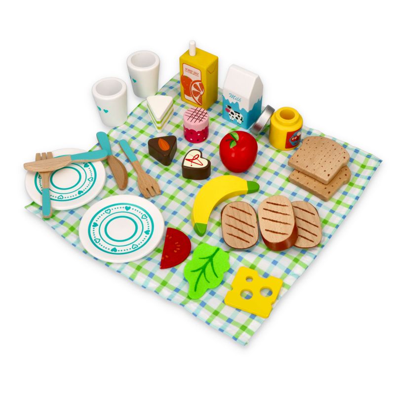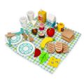 Cały zestaw został zapakowany w śliczny koszyk, co również istotne w całości z drewna. Śliczny miętowy kolor i nadruk z boku dodają mu uroku. Pasująca serwetka, na której można rozłożyć elementy to również atut tego produktu. Zaproście misie i koleżanki na wspólny wypad za miasto, albo zróbcie sobie piknik w pokoju nawet, gdy pogoda nie sprzyja biwakom.