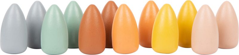 Znany producent zabawek Small Foot Design kolejny raz zaskakuje oryginalnym pomysłem na tę grę. W tym wydaniu będą to wesołe papużki wysiadujące kolorowe jaja. Przed rozpoczęciem gry należy rozłożyć wszystkie kolorowe jaja, a następnie przykryć je sympatycznymi papugami i wymieszać. W tym momencie, żaden z graczy nie będzie znał położenia danych kolorów. Do dyspozycji macie 12 kolorowych jaj ( 6 par ), 12 papug oraz 2 kostki. Gracze rzucają naprzemiennie kostkami starając się odnaleźć pary kolorów. W jednej turze gracz może odkryć 2 lub 4 figury w jednym kolorze. Osoba której uda się odgadnąć 1 parę zatrzymuje papugi wraz z jajami, natomiast drugą parę odkłada na swoje miejsce i przekazuje turę kolejnej osobie. Osoba, która odgadła 2 pary zatrzymuje wszystkie figury i dostaje przywilej kolejnego rzutu. W przypadku podniesienia różnych kolorów, gracz odkłada pionki w to samo miejsce. Gra toczy się do momentu odgadnięcia wszystkich par. Wygrywa gracz z największą ilością jaj/papug ( dopuszczalny remis ).