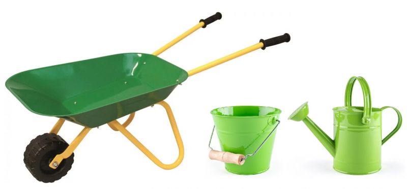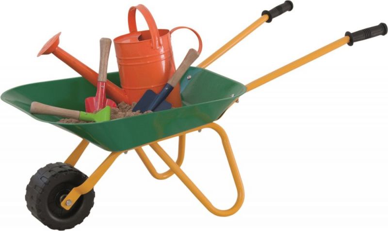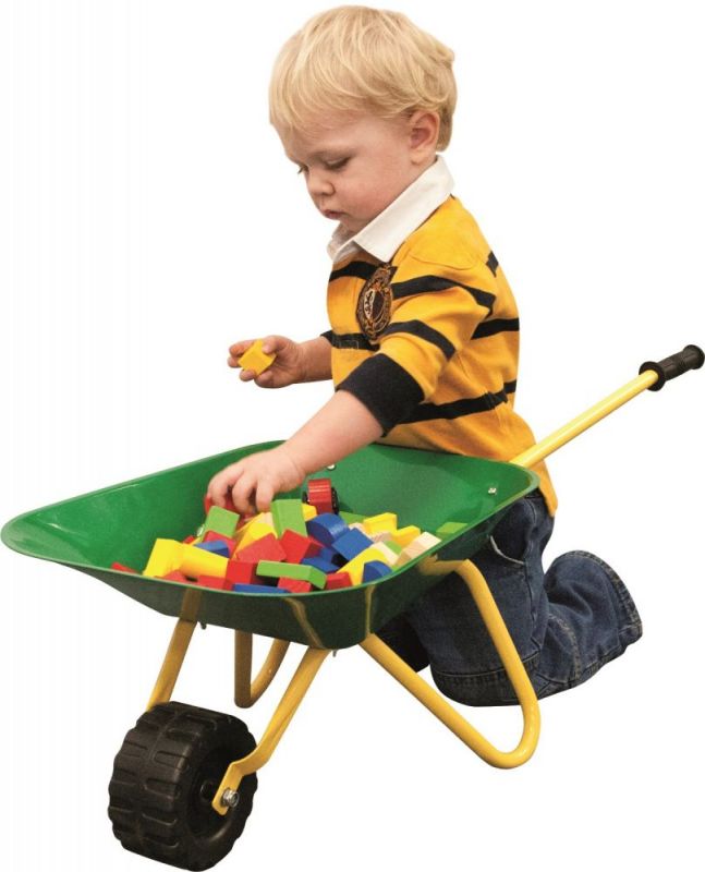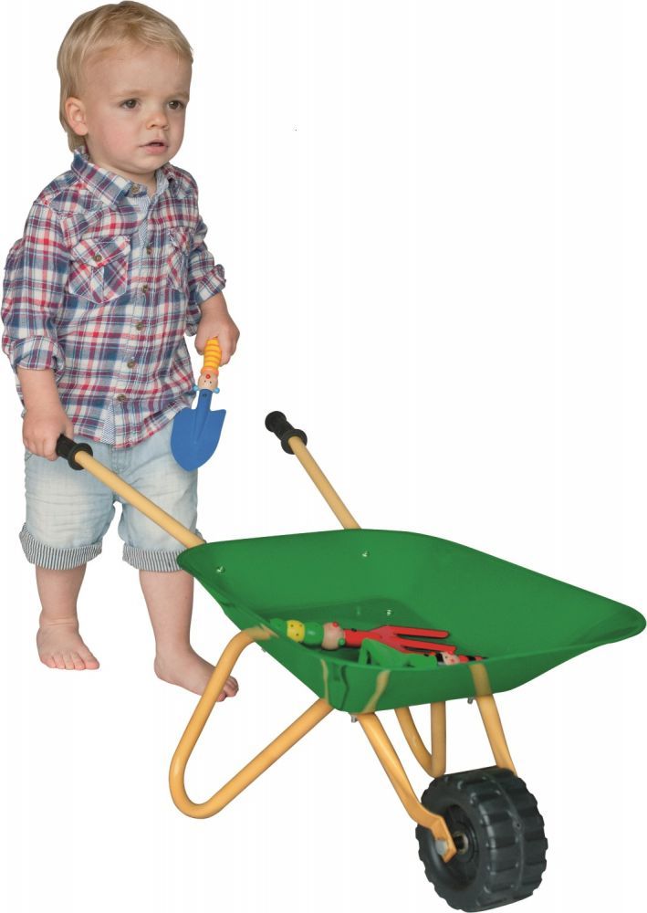 - Przepiękna zielona taczka - z początku będzie stanowić transport dla zabawek, natomiast z czasem przerodzi się w narzędzie do transportowania narzędzi, piasku, kamieni, roślin i wielu innych.