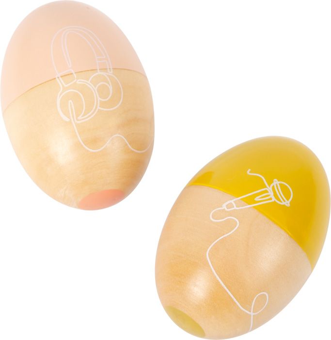 W zestawie otrzymujecie 5 marakasów w barwach: czerwony, niebieski, zielony, żółty oraz beżowy. Co jednak jest najważniejsze, to że każdy z marakasów wydaje inny dźwięk podczas potrząsania. Dodatkowo na każdym znajduje się biały szkic przedstawiający symbol związany z muzyką np. mikrofon, słuchawki czy zwykłą nutę.