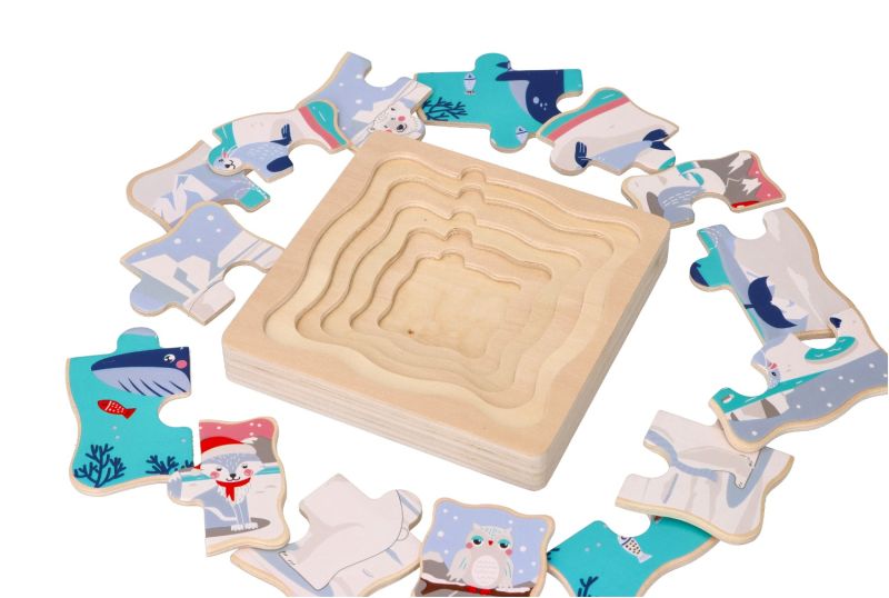 Kolejna ciekawa propozycja od Adam Toys. Tym razem przedstawiamy układankę warstwową oczywiście z serii zwierząt arktycznych. Jest to kolejny etap wtajemniczenia w układanie puzzli, gdyż ich ułożenie jest trudniejsze, elementów jest więcej i trzeba je układać w 5 warstwach. Ale bez obaw, gdybyście mieli jakikolwiek problem z ułożeniem na odwrocie elementu znajduje się cyferka, wskazująca do której warstwy należy dany puzelek.