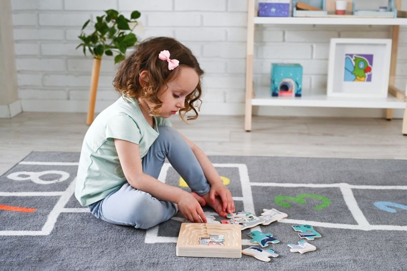 Puzzle wykonane z lakierowanego drewna. Stanowią świetny pomysł na prezent na pierwsze urodziny.