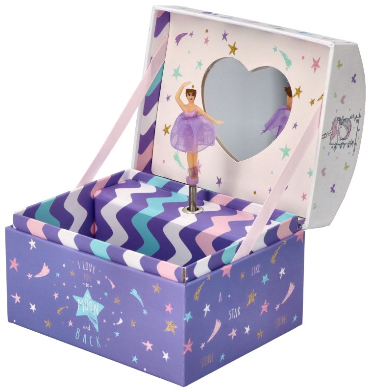 Drobiazgi, bibeloty, spinki, biżuteria te wszystkie drobiazgi potrzebują miejsca. Teraz znajdą je w tym pudełeczku, w którym główną role odgrywa prześliczna, mieniąca się we wszystkich kolorach tęczy baletnica. Przepiękna sukienka w którą jest odziana dodaje charakteru baletnicy, a lustereczko na tylnej ściance sprawia wrażenie jak byśmy uczestniczyli w spektaklu na wielkiej arenie. Tym razem pozytywka bez dodatkowych przegródek i szufladek, jednak miejsca w środku jest wystarczająco dużo by przechowywać tam niewielkie, aczkolwiek drogocenne drobiazgi :)