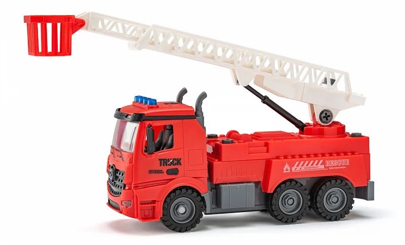 - możliwość rozebrania wozu na części pierwsze (można rozebrać samochodzik do podwozia, ściągając po kolei wszystkie elementy górne jak np. drabina, kabina, nadwozie a także koła)