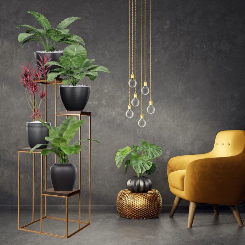 Kwietnik czarny będzie dobrze dopasowaną, praktyczną dekoracją do mieszkań w stylu industrialnym czy nowoczesnym. Dzięki temu, że kwietnik wykonany jest z metalu macie pewność że posłuży Wam przez długie lata. Eleganckie blaty imitujące marmur dodają elegancji i jednocześnie są praktycznym blatem na którym możecie postawić różne akcesoria czy ozdoby. Co najważniejsze produkt nie wymaga montażu. Po otwarciu przesyłki po prostu wyciągacie zamówiony kwietnik, stawiacie go w wybranym wcześniej miejscu i voilà! Prosty design, ciekawe rozmieszczenie poszczególnych podstaw przyciągnie uwagę Waszych gości a także pozwoli eksponować rośliny o różnej wysokości.