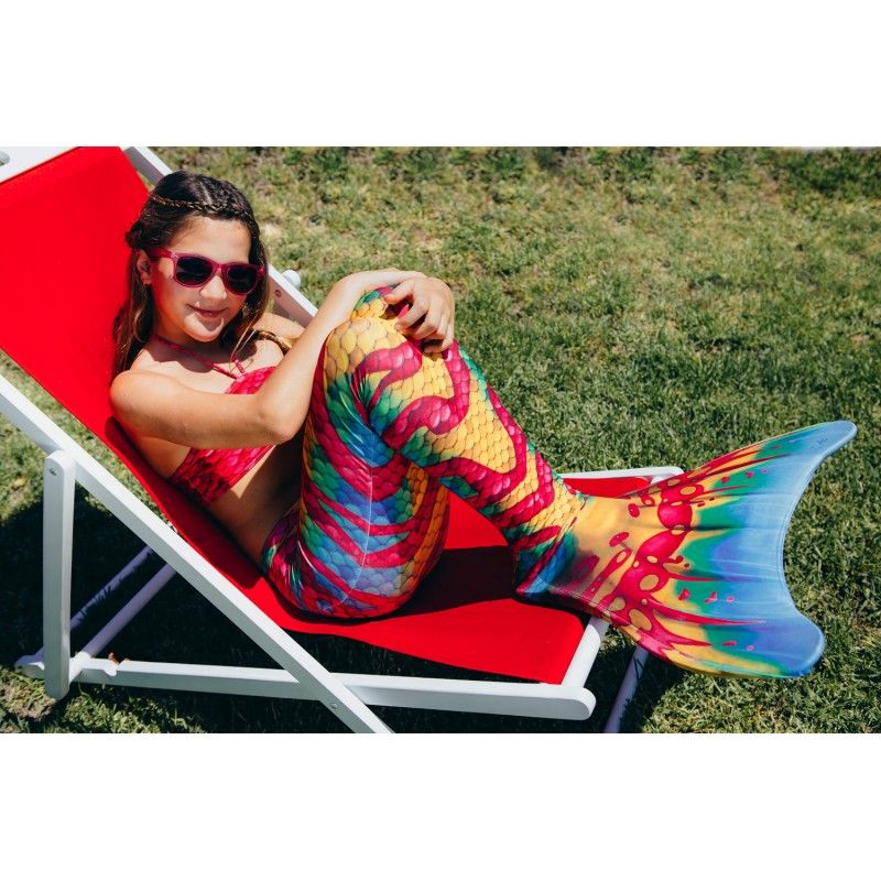 Syreni ogon Aquaris jest produkowany w Hiszpanii z wysokiej jakości Lycry Xtra Life, co gwarantuje optymalne przyleganie i komfort użytkowania. Design uwzględniający rybie łuski, połyskujące kolory i efekt 3D nadają produktowi realistyczny wygląd. Dostępne w wielu kolorach, wzorach i rozmiarach dla każdego wieku.