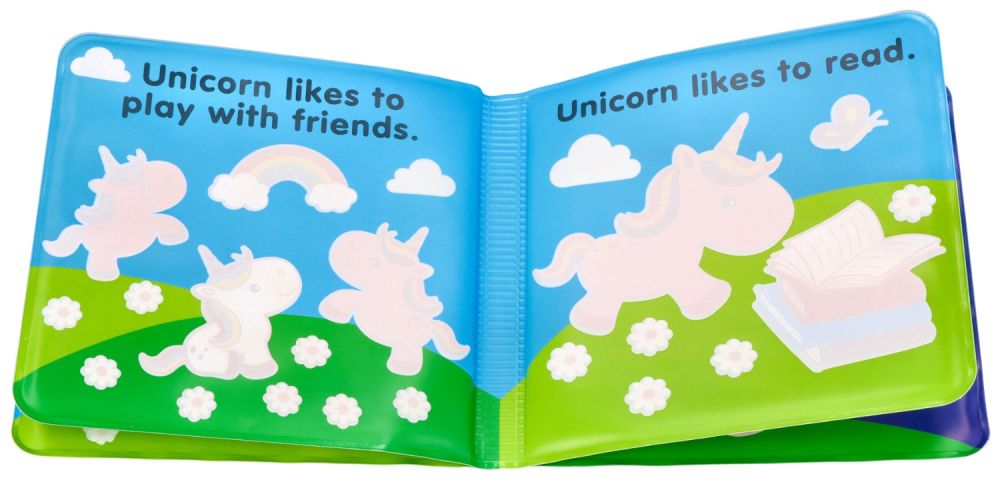 Marka Buddy & Barney posiada szeroką gamę swoich produktów. Są oni specjalistami w jednej szczególnej kategorii, jaką są zabawki do kąpieli. Tym razem będzie to produkt, którego nikt by się nie spodziewał. Magiczna książeczka kąpielowa zauroczy naszego malucha. Urokliwy, kolorowy jednorożec będzie idealnym kompanem codziennych kąpieli. Zanurzanie książeczki w wodzie uruchomi magiczne sztuczki- na stronach zaczną pojawiać się kolorowe elementy, które do tej pory były niewidoczne. Teraz można zobaczyć jednorożca w pełnej okazałości. A z pomocą rodzica maluch dowie się, co lubi nasz kąpielowy bohater. Książeczka została zaprojektowana tak, by unosiła się na wodzie, więc nie zgubi się w bąbelkach. Jest wodoodporna, przez to łatwa do wysuszenia i przechowywania.