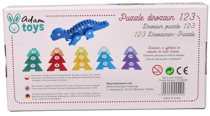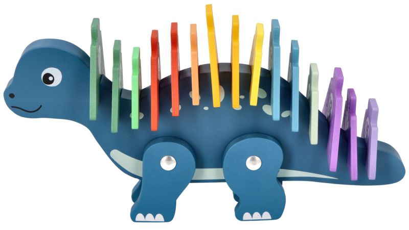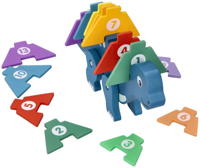 Matematyczny triceratops ma w swoim przyborniku cyfry od 1-15, które ułatwią zapoznanie się ucznia z dodawaniem i odejmowaniem. Układanie klocków może też być nie lada wyzwaniem- możemy na przykład dać maluchowi zadanie, ułożenia cyfr od najmniejszej do największej. Możliwości jest wiele, by nauka liczenia była miła i przyjemna. Atutem zabawki jest takie wykonanie elementów, aby pasowały zarówno do dinozaura, jak i do siebie. Dzięki temu możemy je układać np. na stoliku tworząc kolorową mozaikę lub bawiąc się cyferkami.
