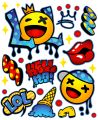 Prezentowany model LOL to wesołe buźki czyli emotikony używane w komunikacji tekstowej. Służą do wyrażania nastrojów i emocji w zabawny sposób. Czemu by nie naprasować ich na ulubiony t- shirt i zarażać śmiechem innych:) Zestaw w kolorystyce niebiesko- żółto- czerwonej to nie tylko uśmiechnięte emotki, ale także graficzne motywy takie jak: fikuśne napisy, gwiazdki oraz usta.