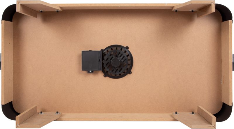 Na spodzie planszy znajduje się komora na trzy baterie typu AA (baterie nie są dołączone do zestawu). Wystarczy włączyć zabawkę, aby delikatny strumień powietrza poniósł Wasz krążek.
