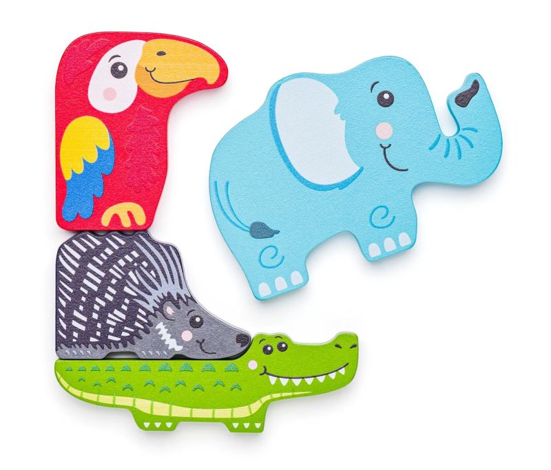 Sympatyczne zwierzątka zabiorą malucha w fascynującą podróż i sprawią, że zabawie nie będzie końca. Zabawkę można używać na kilka sposobów. Zarówno jak układankę, puzzle czy wieżę. Zwierzątka można również wykorzystać jako bohaterów zabaw czy teatrzyków.