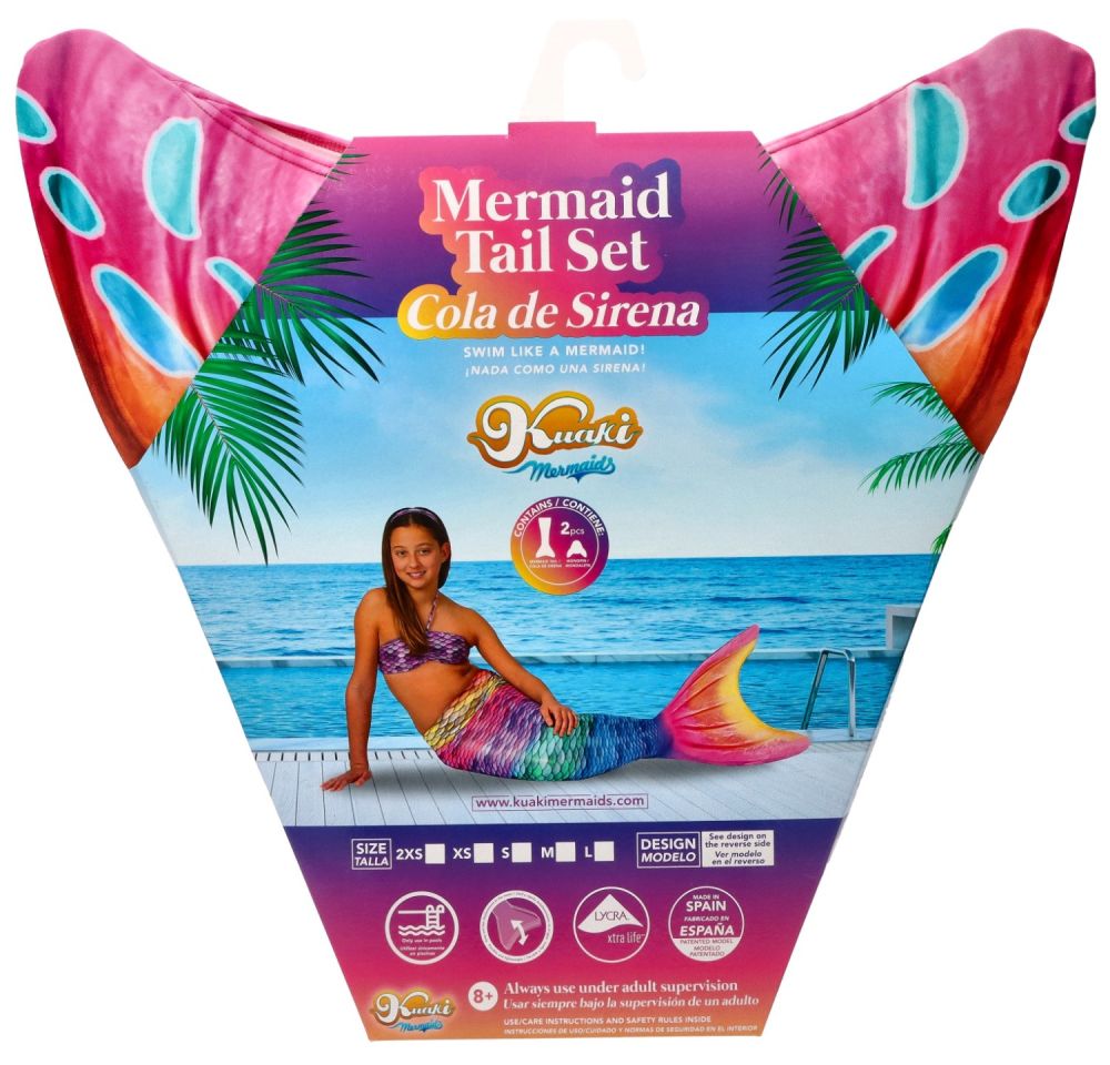 Syrenie ogony występują w wielu kolorach (również dla chłopców) oraz w wersji z topem bikini lub bez. Zestaw dwuelementowy zawiera:
