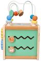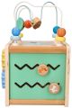- pętle motoryczną na górze z różnymi koralikami do przesuwania po dwóch drucikach - ta zabawa ćwiczy motorykę i rozwija umiejętność chwytania,