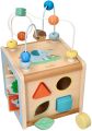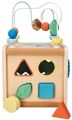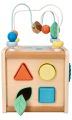- sorter kształtów, który rozwija umiejętność ich rozróżniania i dopasowywania do odpowiednich otworów. W zestawie również cztery pasujące klocki w kształcie koła, trójkąta, kwadratu i listka,