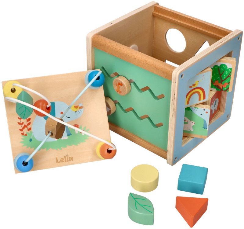Nowa kostka od Lelina to spora dawka zabawy i ćwiczenia dla małych paluszków. Cała kostka została ozdobiona stworzonkami, które już czekają na wspólną zabawę. Wesoły słonik, ptaszek, wiewiórka czy króliczek będą Wam towarzyszyć w odkrywaniu atrakcji tej zabawki. Kostka wykonana z wysokiej jakości drewna bez ostrych krawędzi- w pełni bezpieczna dla dziecka. Nowoczesny design, miłe dla oka pastelowe kolory na pewno przypadną do gustu maluchowi.