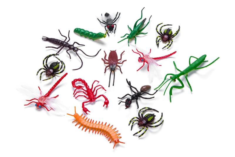 Zestaw 14 figurek owadów, robaków i stawonogów ( m. in. 3 pająki, 2 ważki, mrówka czy stonoga ) zapakowanych w praktyczną tubę. Figurki są wykonane są z miękkiej gumy, ukazują realistyczne detale i unikalne cechy zwierząt. Przyciągające i żywe kolory od razu zachęcą brzdąca do zapoznania się z tymi interesującymi insektami.