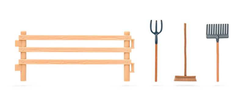- narzędzia: widły, szczotka, grabie
