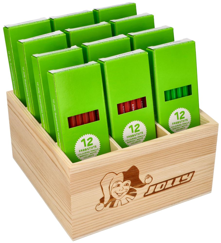 Duży zestaw kredek w pudełku doskonale sprawdzi się podczas grupowych zajęć plastycznych dla dzieci. Idealnie zda egzamin zarówno w przedszkolu, na świetlicy, jak i w szkole. Pudełko drewniane posiada przegrody, dzięki którym poszczególne kolory kredek są umieszczone razem. Solidna drewniana konstrukcja na pewno wytrzyma nie jeden artystyczny warsztat.