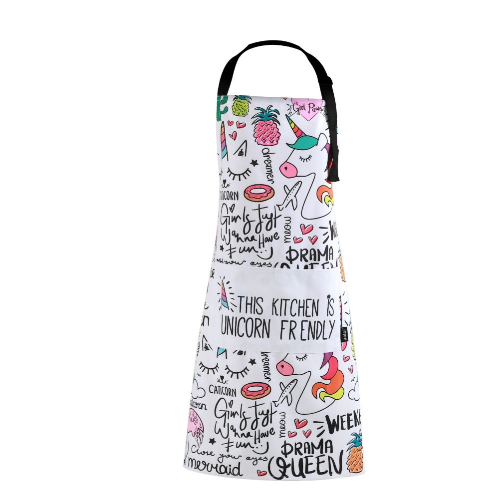 Ten niezastąpiony gadżet łączy praktyczne cechy fartuszka oraz interesujący motyw tęczy, jednorożców i klimatycznych napisów - tym samym zachęcając do pomocy w kuchni Wasze pociechy.