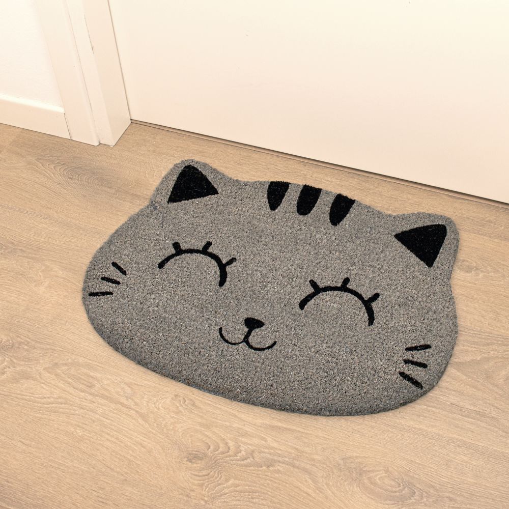 Elegancka wycieraczka z motywem sympatycznego kociaka będzie stylową wizytówką Waszych mieszkań i domów. A może potrzebujecie śmiesznej wycieraczki przed wyjściem na taras? Sprawdzi się również w pokoju dziecka, które potrzebuje doznań sensorycznych. Sztywna wycieraczka ma inną fakturę niż dywanik, ale wyglada równie dobrze. To również pomysł na prezent dla kociarza.