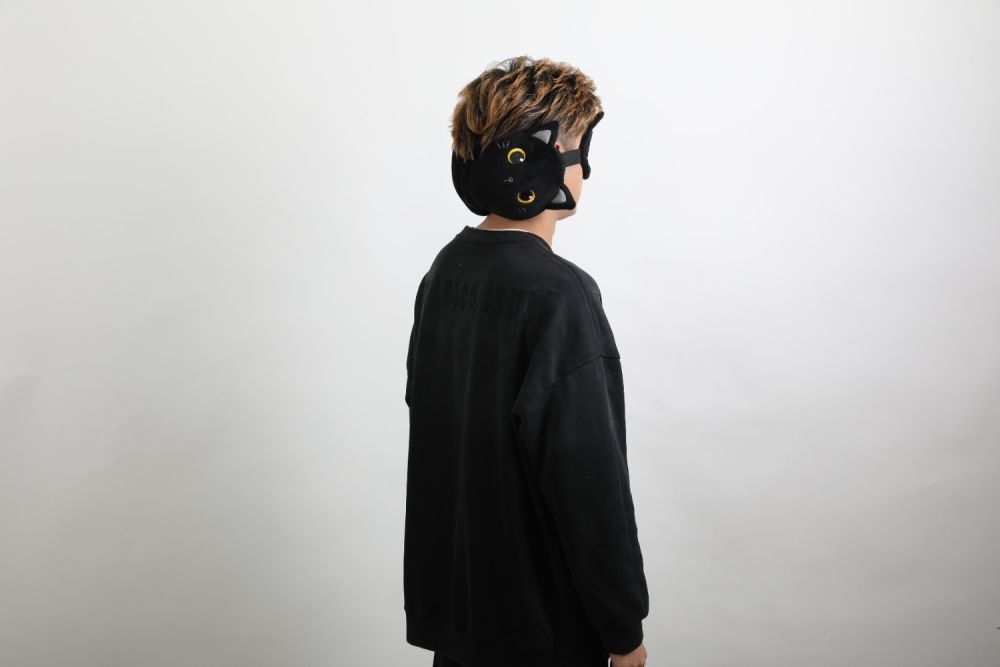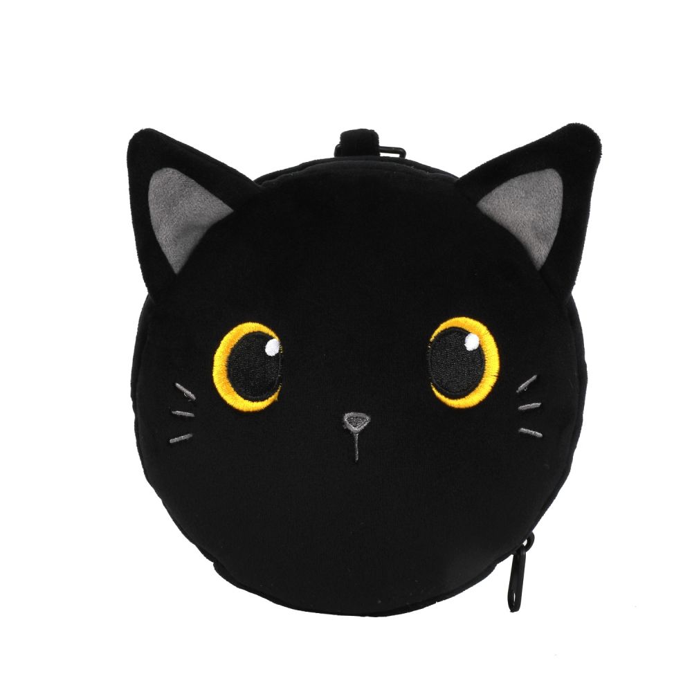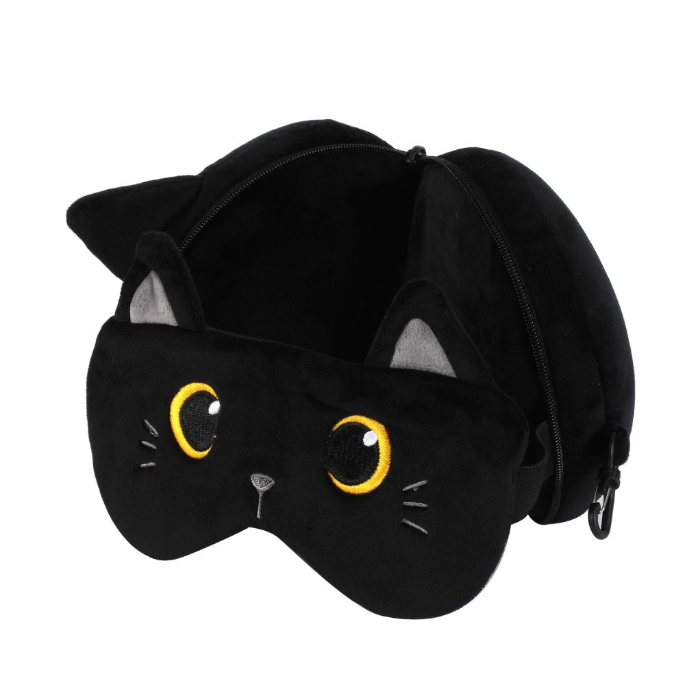 Poduszka podróżna z maską czarny kot