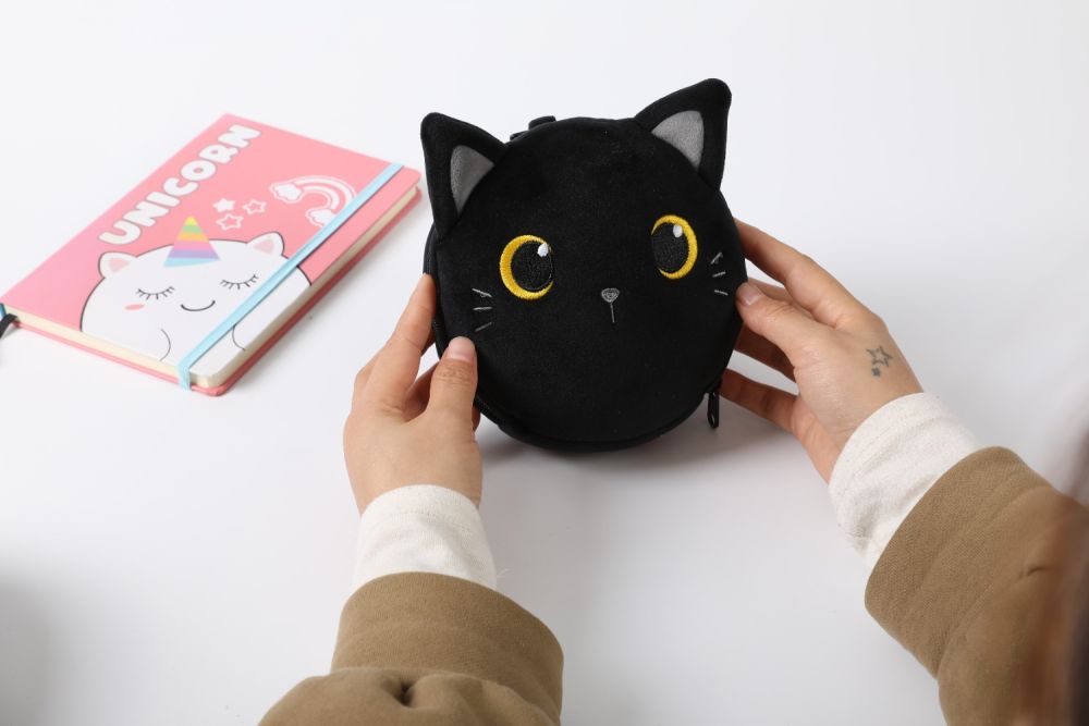Jesteś typem śpiocha w trakcie długiej podróży? Polecamy Ci znakomitą poduszkę z opaską na oczy, która umili Ci niejedną wycieczkę! Pluszowa poduszka zapinana na zamek z wizerunkiem czarnego kota z przenikliwymi oczkami będzie wspaniałym towarzyszem nie tylko dla dziecka w podróży na wymarzone wakacje.