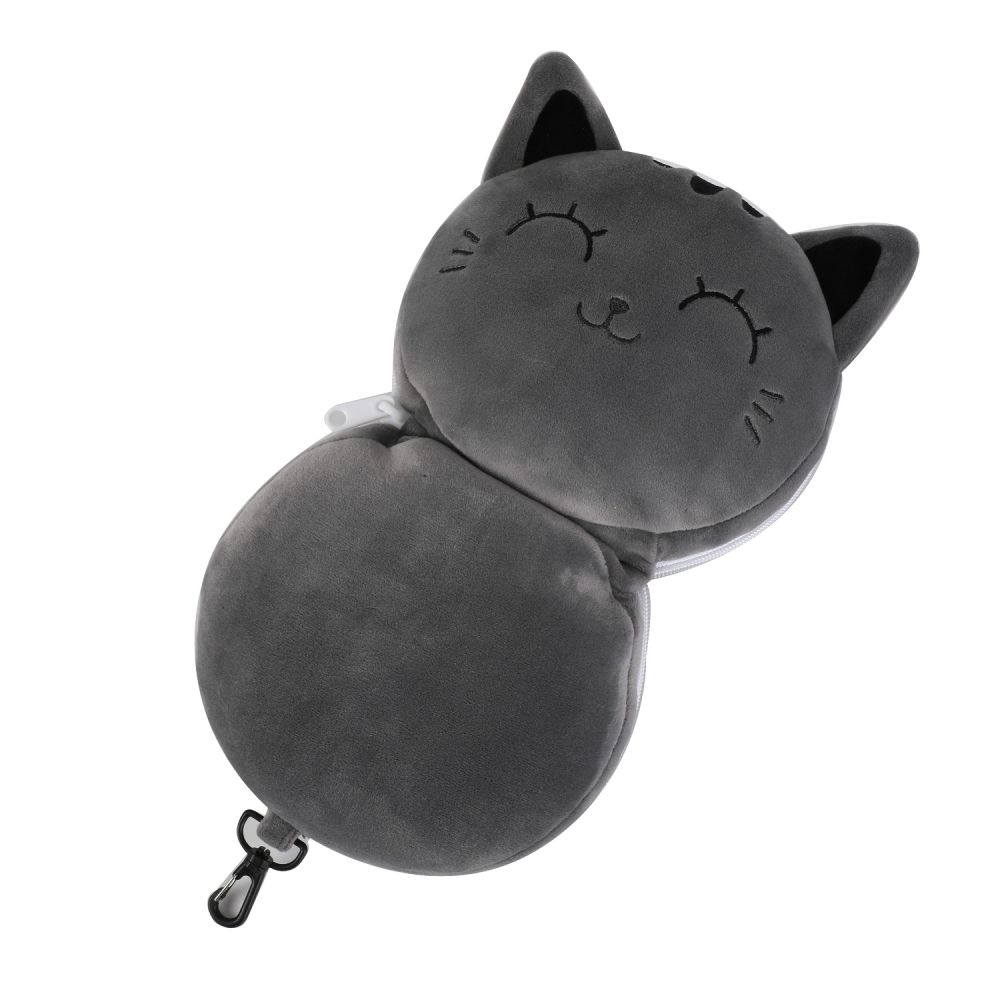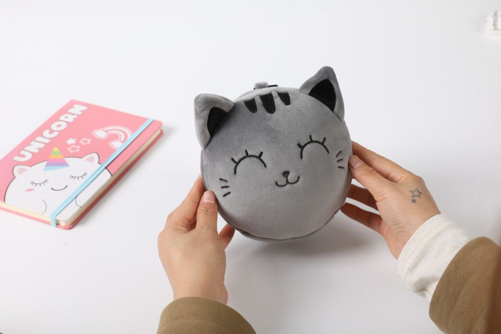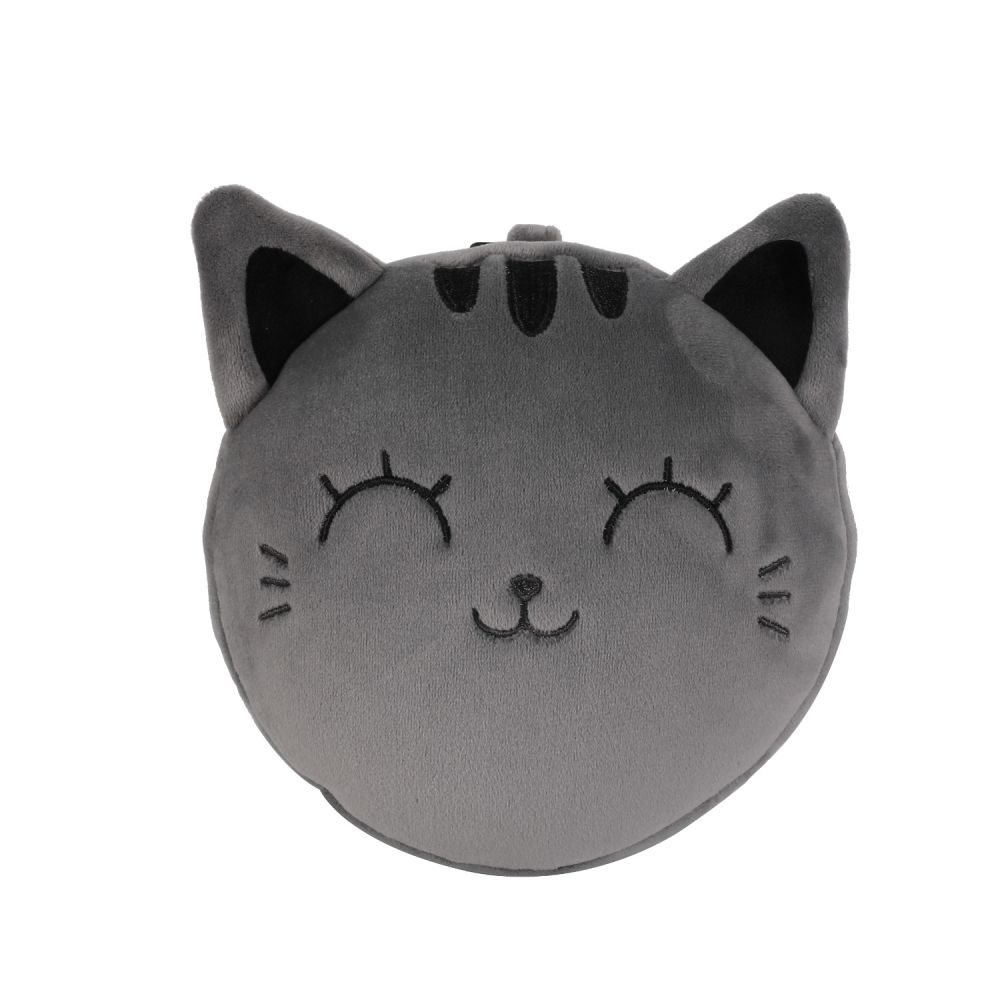 Pluszowa poduszka zapinana na zamek z wizerunkiem kotka będzie wspaniałym towarzyszem dla dziecka w niejednej podróży na wymarzone wakacje.