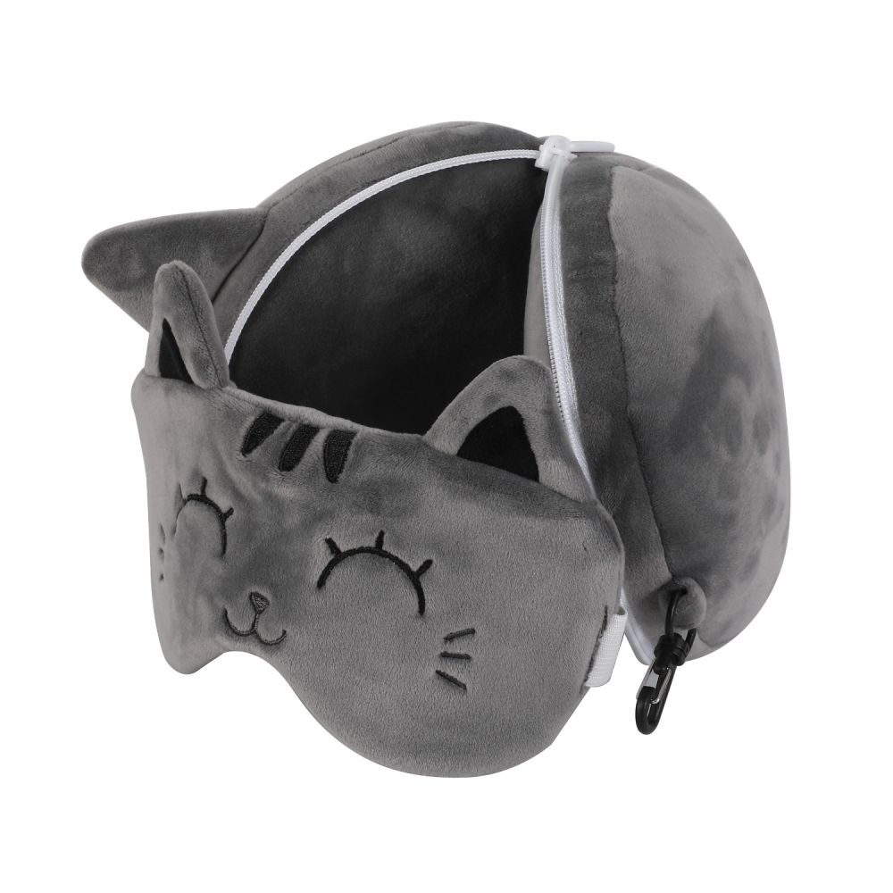 Niewygodna podróż? Twarde oparcia w autobusie? Zbyt jasno? Te problemy szybko znikną dzięki naszej składanej kociej poduszki z opaską na oczy, od włoskiej marki I-Total.