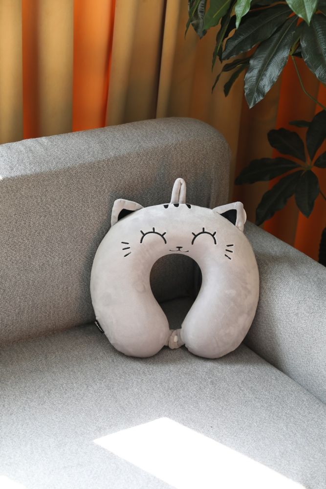 I-Total - Poduszka pod szyję "rogal" szary kot