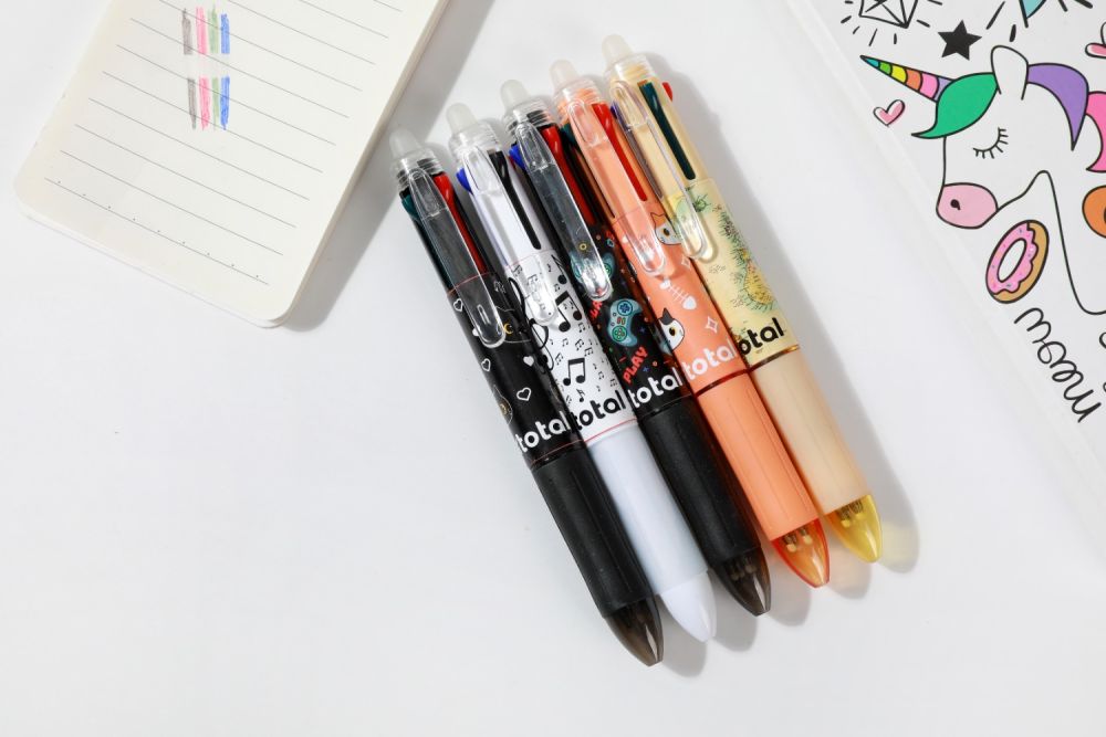 Specjalnie skonstruowany mechanizm wysuwania i chowania wkładów pozwala na szybki wybór odpowiedniego koloru. Wystarczy jedynie pociągnąć za odpowiedni plastikowy trzpień w kolorze wkładu i mamy wysuniętą metalową końcówkę piszącą. Dodatkowo długopis posiada opcje zmazywania. Jak to działa ? Kiedy chcesz poprawić błąd, który zrobiłeś na kartce papieru, odwróć długopis, użyj silikonowej końcówki i pocieraj ją intensywnie. Voila! Gotowe:D