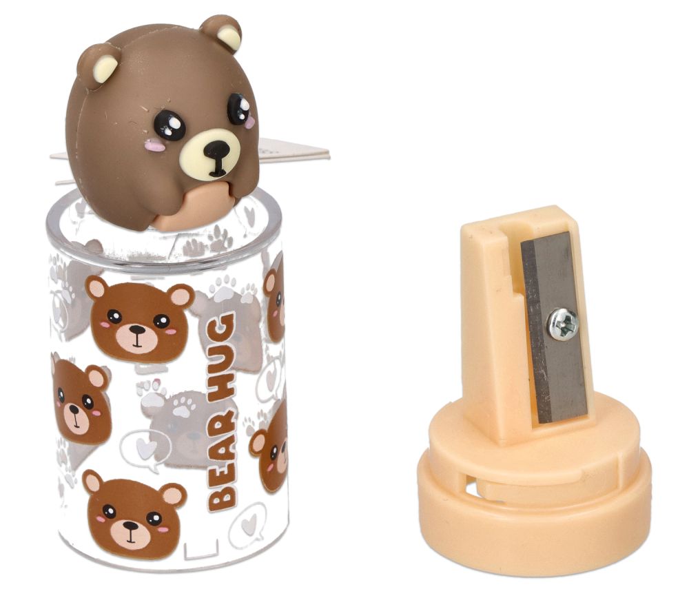Temperówka z bezpiecznym ostrzem i przezroczystym pojemnikiem na ścinki z motywem uroczych zwierząt. Temperówką można ostrzyć kredki i ołówki. Zajmuje niewiele miejsca- idealnie zda egzamin w szkolnym piórniku. Przydatny gadżet idealnie sprawdzi się w szkole i przedszkolu, ale także podczas kreatywnych zabaw w domu.