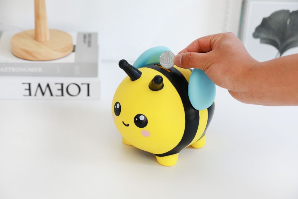 Duża skarbonka w kształcie pszczółki to uroczy i praktyczny dodatek do każdego pokoju – zarówno dziecięcego, jak i rodzinnej przestrzeni. Wykonana z trwałego materiału, zachwyca starannym wykończeniem, żywymi kolorami i sympatycznym uśmiechem, który od razu przyciąga uwagę. Jej spory rozmiar pozwala pomieścić naprawdę dużo monet i banknotów, dzięki czemu świetnie sprawdzi się do długoterminowego oszczędzania.