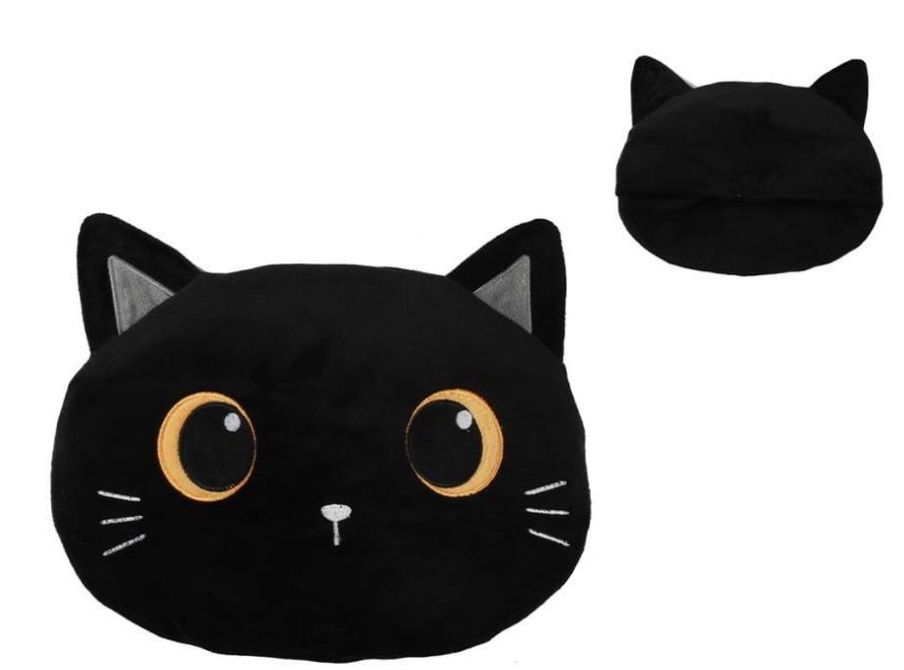 To co jednak najbardziej przykuwa uwagę na pierwszy rzut oka to motyw uroczego, czarnego kociaka :) Poduszka wykonana w żywych kolorach, z motywem słodkiego kociego pyszczka z pewnością przyniesie wiele radości ale co najważniejsze komfortu użytkowania.
